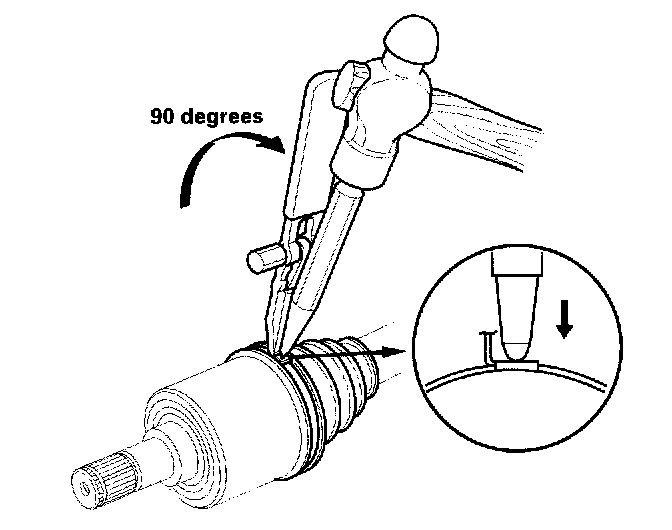 22. Install a new locking tab type boot band on the inboard joint side of the inboard boot. Fold down the locking tabs.
