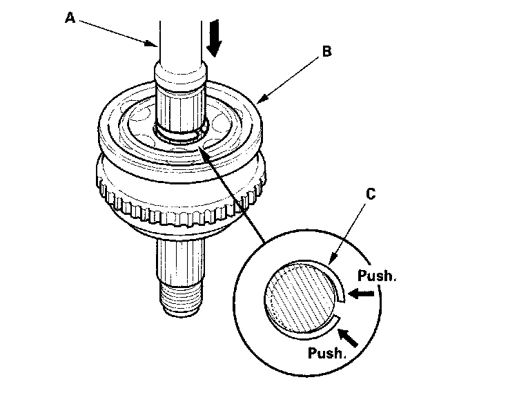 4. Install the snap ring (C).