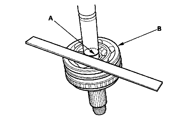 6. Check the alignment of the paint mark (A) with the outboard joint end (B).