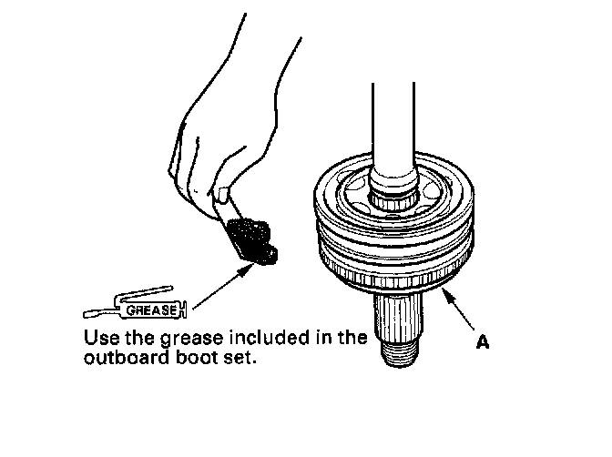7. Pack the outboard joint (A) with the joint grease included in the new joint boot set.