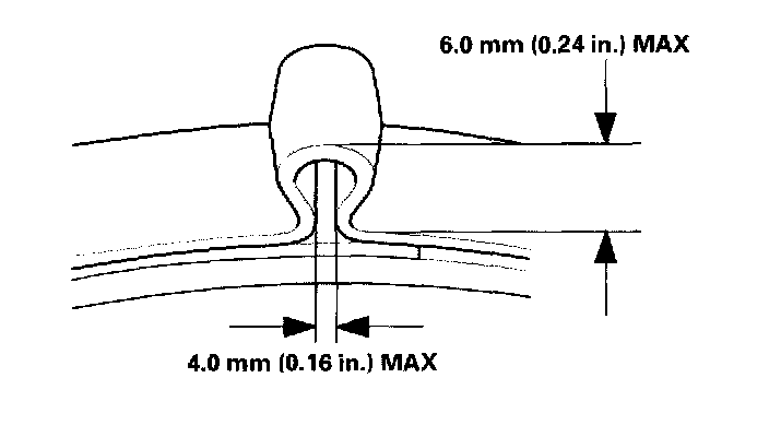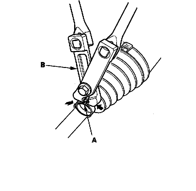 10. Close the ear portion (A) of the band with a commercially available boot band pincers Kent Moore J-35910 or equivalent (B).