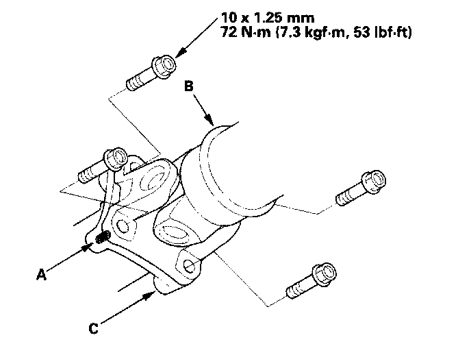 3. Make a reference mark (A) across the propeller shaft (B) and the transfer companion flange (C).