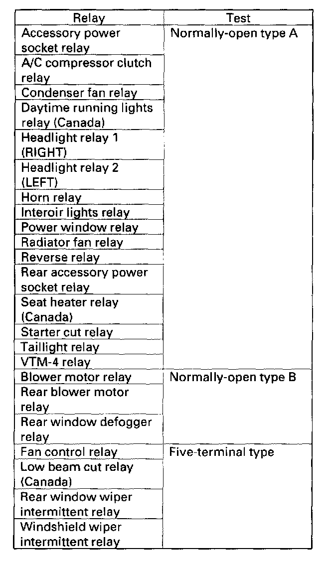 Power Relay TestUse this chart to identify the type of relay, then do the test listed for it.