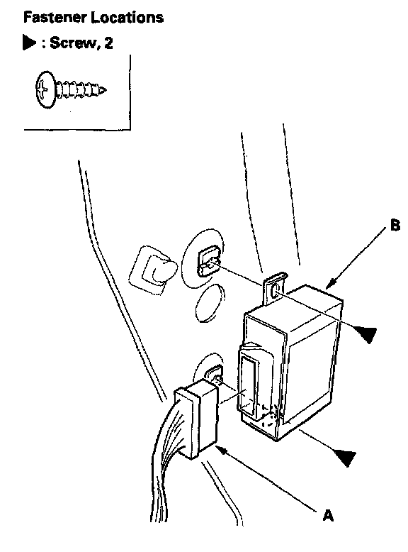 2. Driver's side: Disconnect the power window control unit connector (A), and remove the screws, then remove the power window control unit (B).