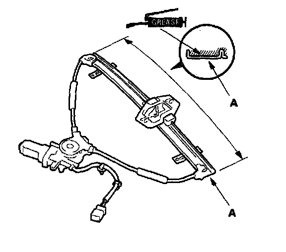 6. Apply multipurpose grease to all the sliding surfaces of the regulator (A) where shown.