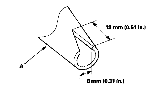 13. Attach the molding (A) with adhesive tape (B) (3M 4240, or equivalent) to the edge of the windshield (C):