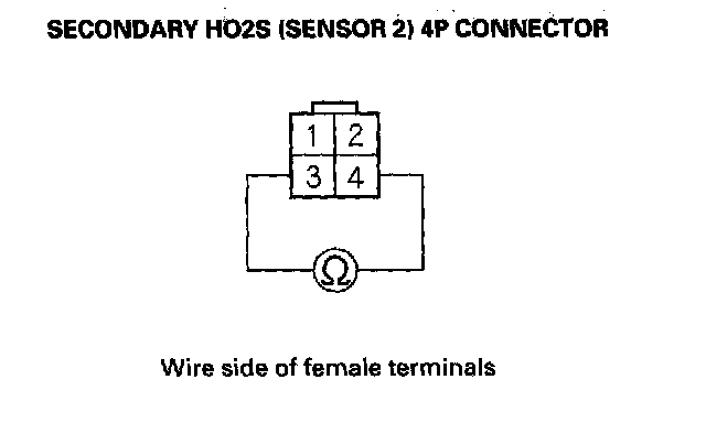 6. At the secondary HO2S (Sensor 2) side, measure resistance between HO2S 4P connector terminals No.3 and No.4.