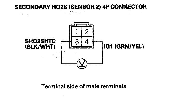 9. Measure voltage between secondary HO2S 4P connector terminals No.3 and No.4.