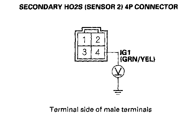 13. Measure voltage between secondary HO2S (Sensor 2) 4P connector terminal No.4 and body ground.