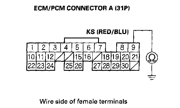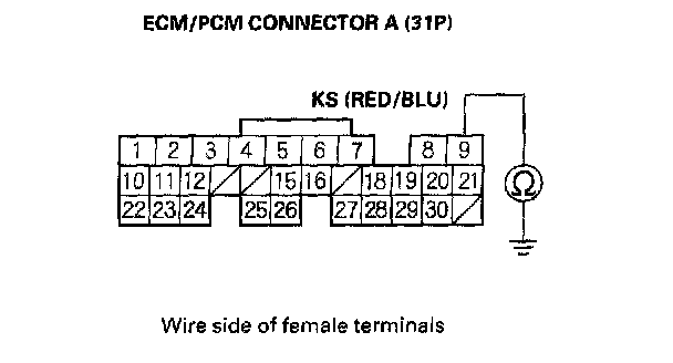 8. Check for continuity between body ground and ECM/PCM connector terminal A9.