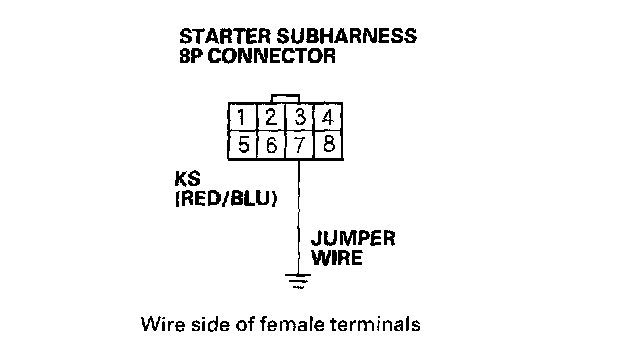 7. Connect starter subharness 8P connector terminal No.7 to body ground with a jumper wire.