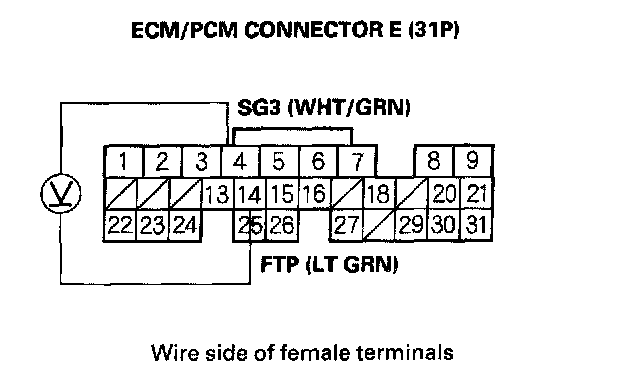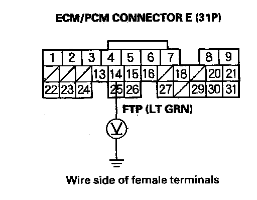 5. Monitor FTP sensor voltage with the HDS, or measure voltage between body ground and ECM/PCM connector terminal E14.