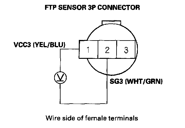 11. Measure voltage between FTP sensor 3P connector terminals No.2 and No.3.