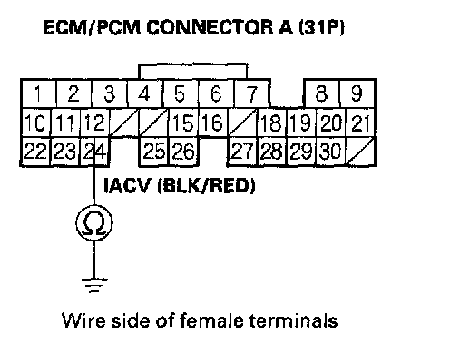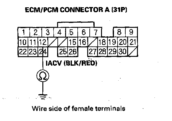 8. Check for continuity between body ground and IAC valve 3P connector terminal No.1.