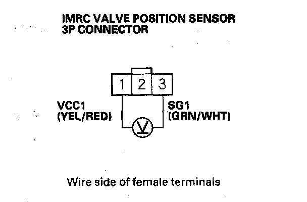 6. At the wire harness side, measure voltage between IMRC valve position sensor 3P connector terminals No.1 and No.3.
