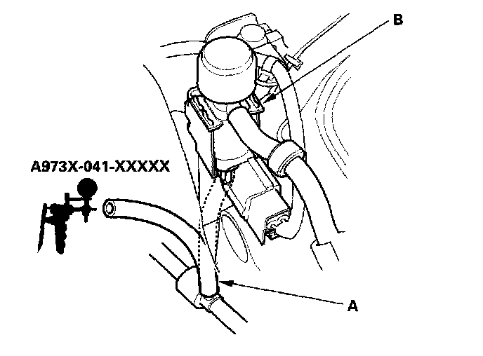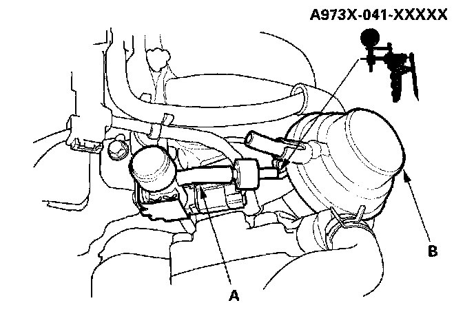 5. Disconnect the lower vacuum hose (A) from the IMRC solenoid valve (B), and connect a vacuum pump to the hose.