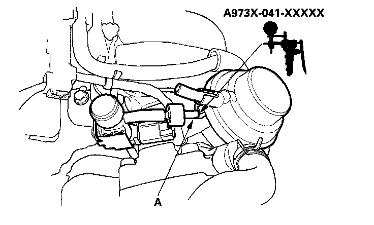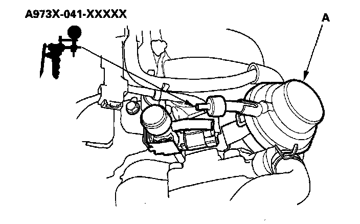 6. Reconnect the lower vacuum hose to the IMRC solenoid valve, and connect a vacuum pump to the vacuum hose (A).
