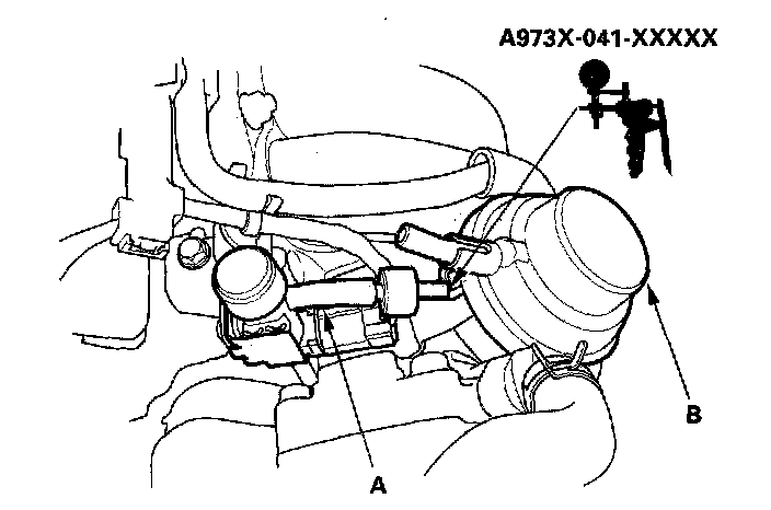 4. Disconnect the vacuum hose (A) from the intake manifold runner control (IMRC) actuator (B), and connect a vacuum pump to the hose.