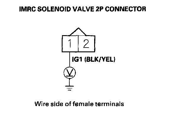 9. Raise the engine speed to 5,000 rpm, then measure voltage between IMRC solenoid valve 2P connector terminals No.1 and No.2.