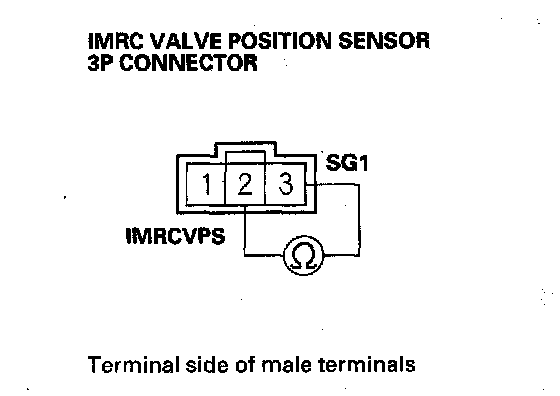 17. At the sensor side, measure resistance between IMRC valve position sensor 3P connector terminals No.2 and No.3.