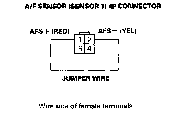5. Connect A/F sensor (Sensor 1) 4P connector terminals No.1 and No.2 with a jumper wire.