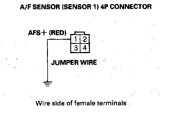 7. Connect A/F sensor (Sensor 1) 4P connector terminal No.1 to body ground with a jumper wire.