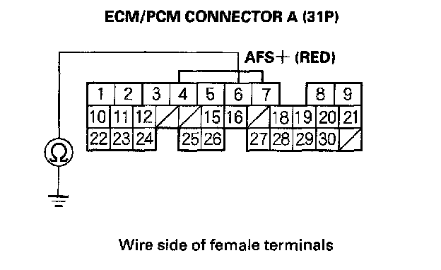8. Check for continuity between ECM/PCM connector terminal A6 and body ground.
