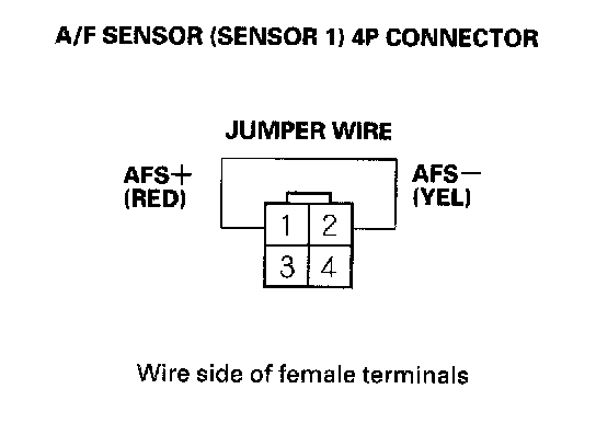 5. Connect A/F sensor (Sensor 1) 4P connector terminals No.2 and No.1 with a jumper wire.