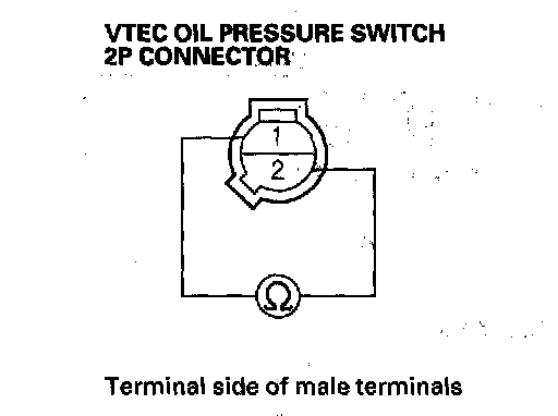 12. At VTEC oil pressure switch side, check for continuity between VTEC oil pressure switch terminals No.1 and No.2.