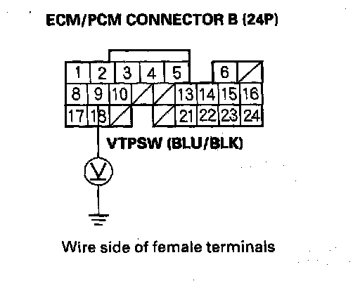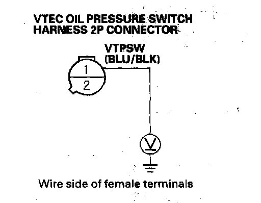 14. Measure voltage between VTEC oil pressure switch 2P connector terminal No.1 and body ground.