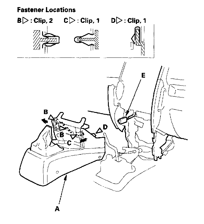 1. Pull out the parking brake lever portion of the cover to release the clips (B).
