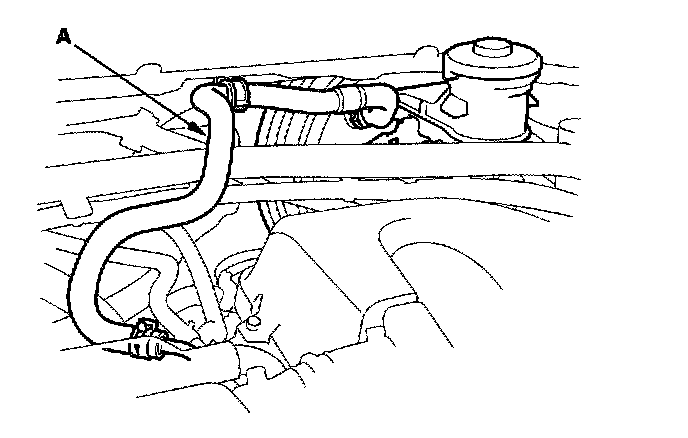 Booster Check Valve Test1. Disconnect the brake booster vacuum hose (check valve built-in) (A) at the booster side.
