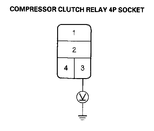 4. Measure the voltage between the No.2 terminal of the compressor clutch relay 4P socket and body ground.