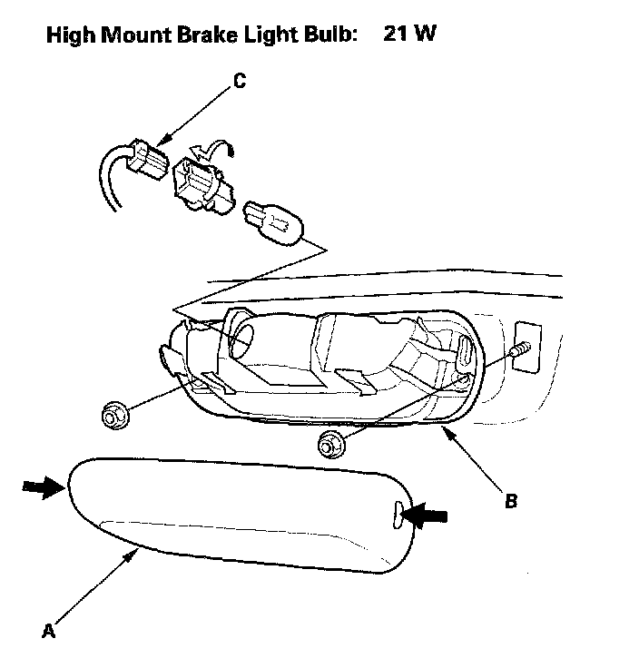 High Mount Brake Light Replacement1. Push in on the clips, and remove the cover (A) from the housing (B).
