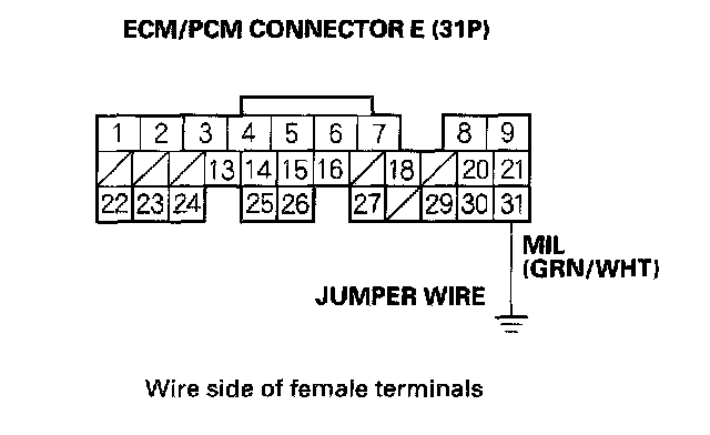 11. Connect ECM/PCM connector terminal E31 to body ground with a jumper wire.