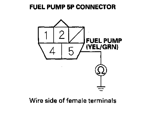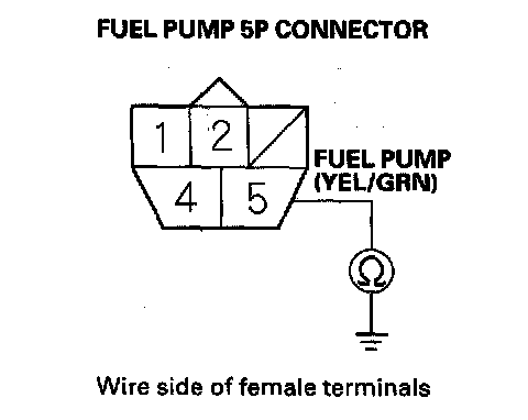 33. Check for continuity between fuel pump 5P connector terminal No 5 and body ground.
