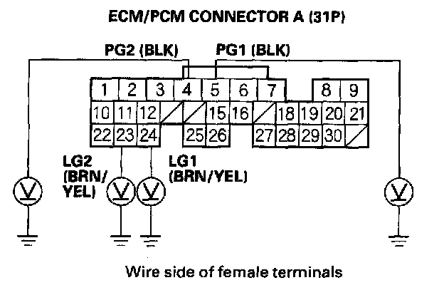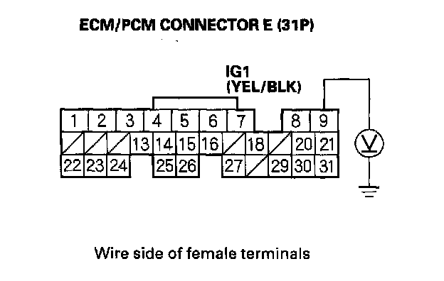 25. Check for continuity between ECM/PCM connector terminal E9 and body ground.