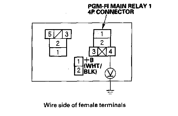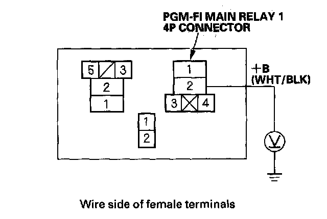 21. Check for continuity between PGM-FI main relay 1 4P connector terminal No.1 and body ground.
