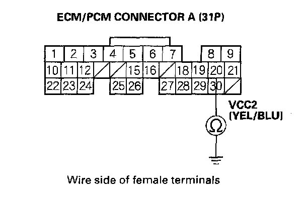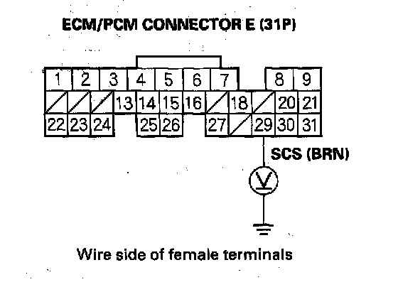 29. Check for continuity between ECM/PCM connector terminal E9 and body ground.