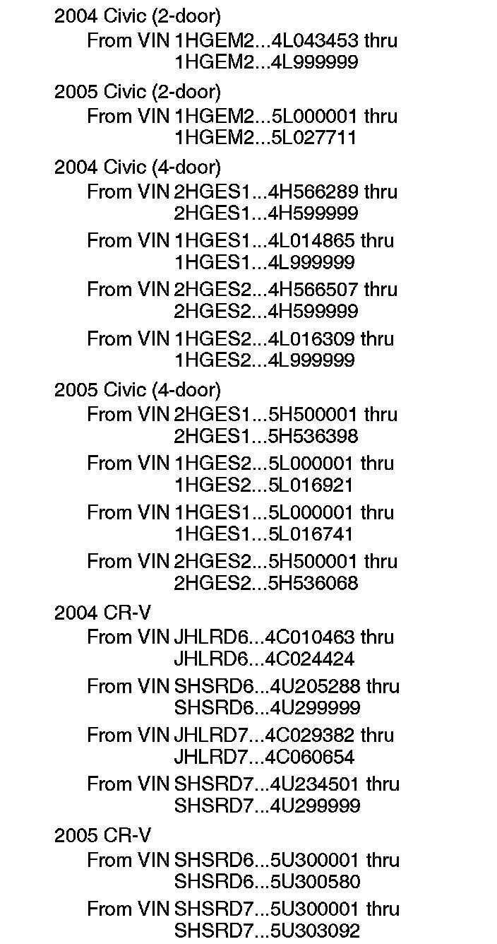 2004-05 Civic and CR-V - See VEHICLES AFFECTED