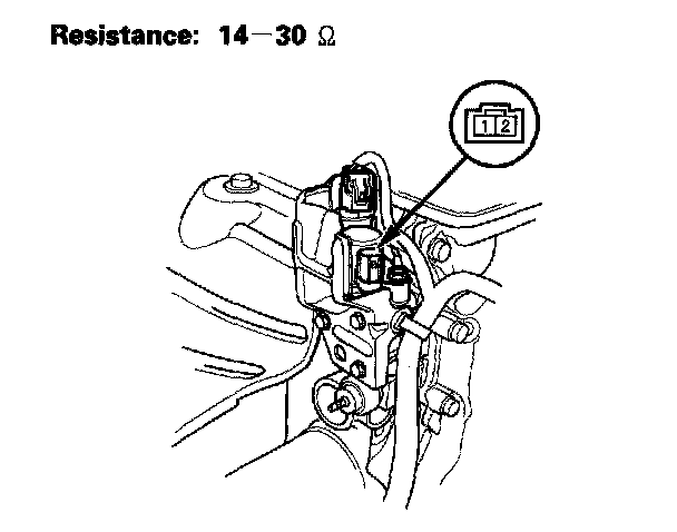 2. Measure resistance between VTEC solenoid valve 2P connector terminals No.1 and No.2.