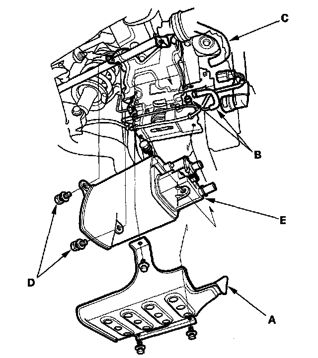 2. Remove the vacuum hoses (B) and drain hose (C).