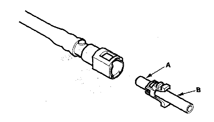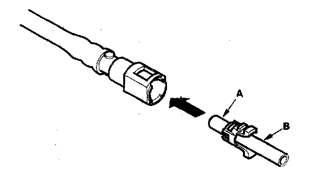 2. Insert a new retainer (A) into the connector (B) if the retainer is damaged, or after: