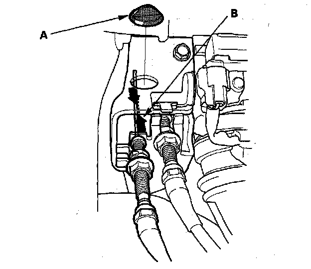 Throttle Cable Adjustment1. Remove the throttle linkage cover plug (A).