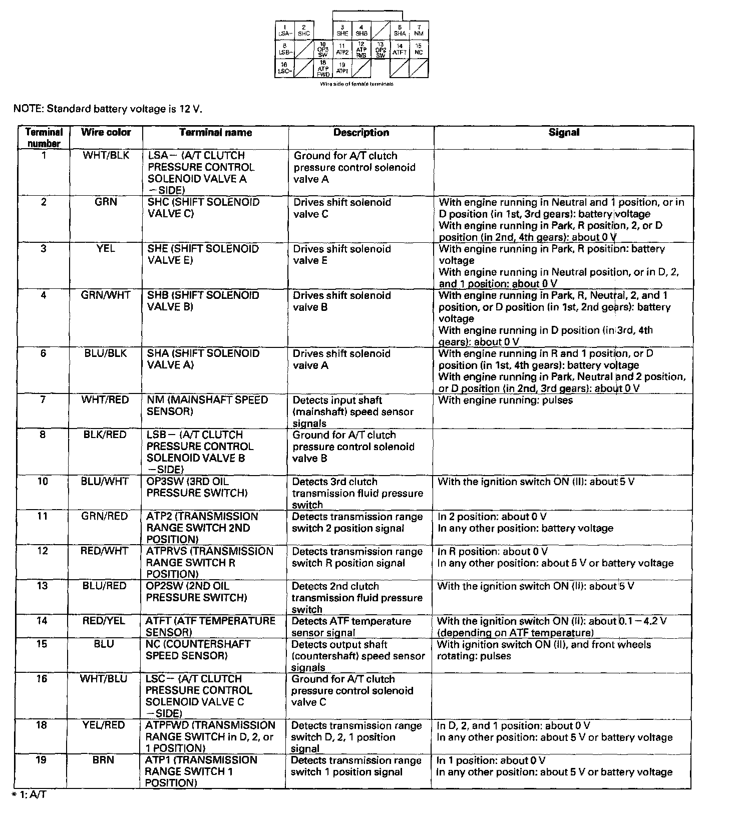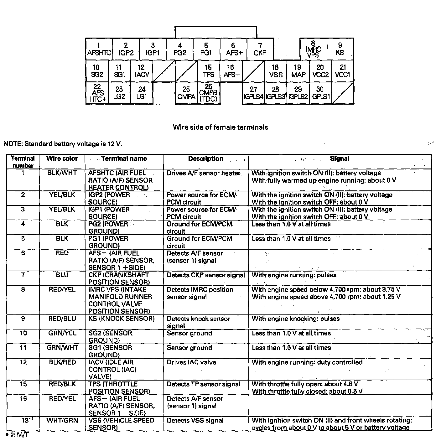 PCM Inputs And Outputs At Connector C (22P)*1: