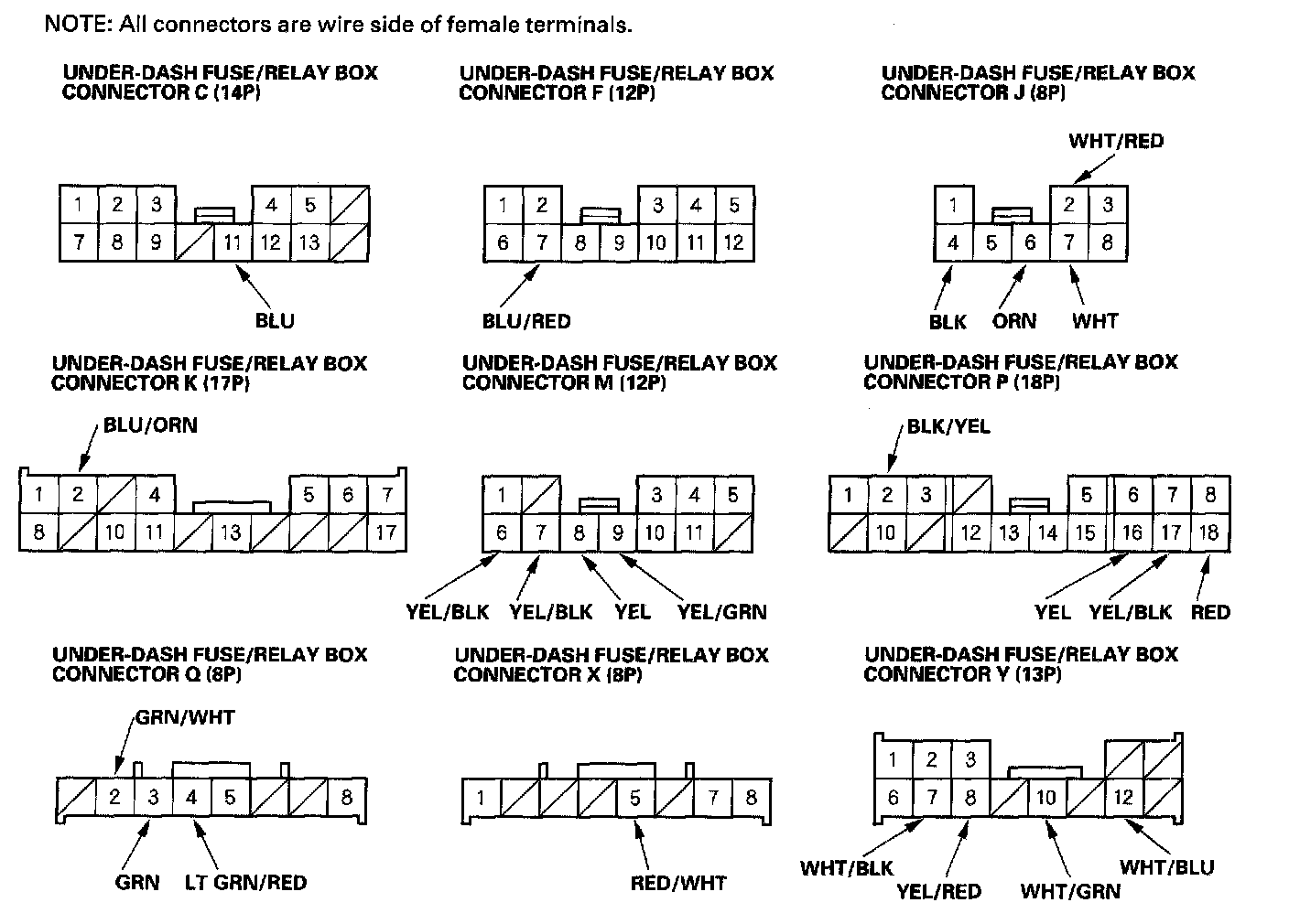 NOTE: All connectors are wire side of female terminals.