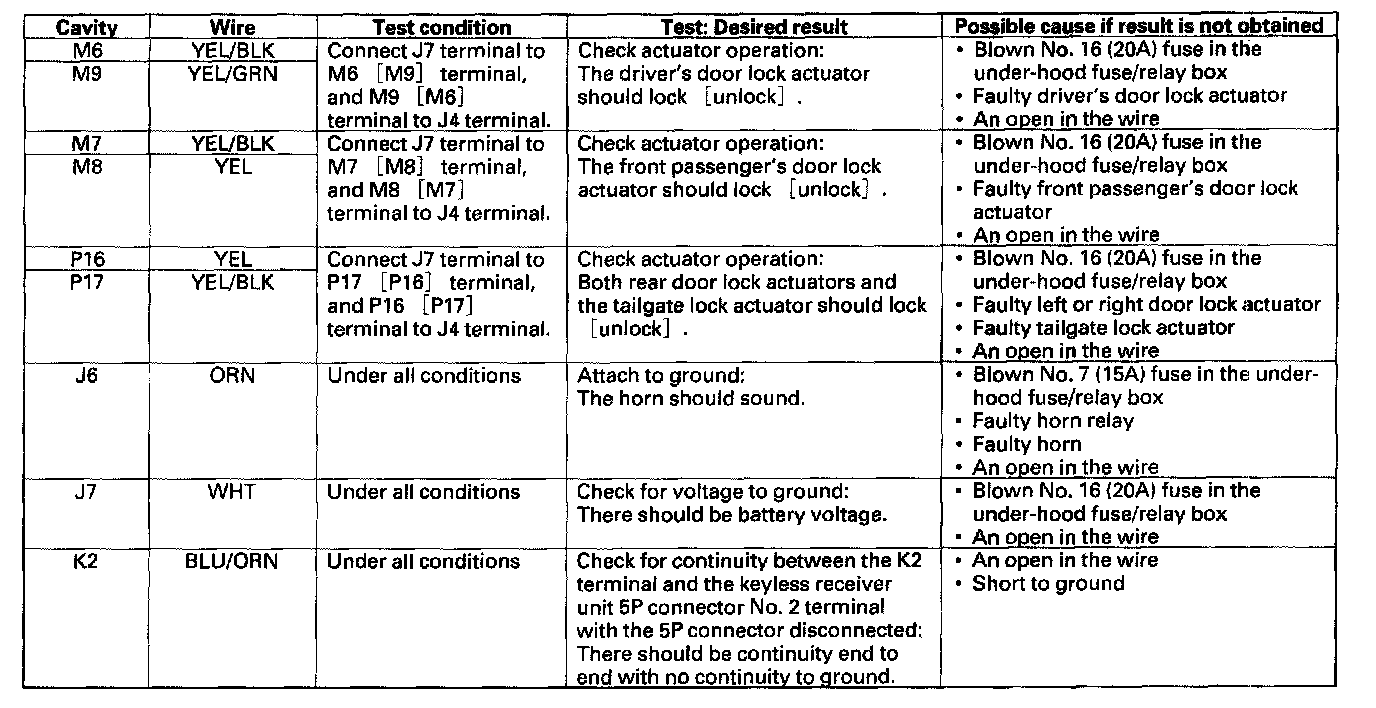 Keyless Entry Module: Testing and Inspection