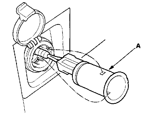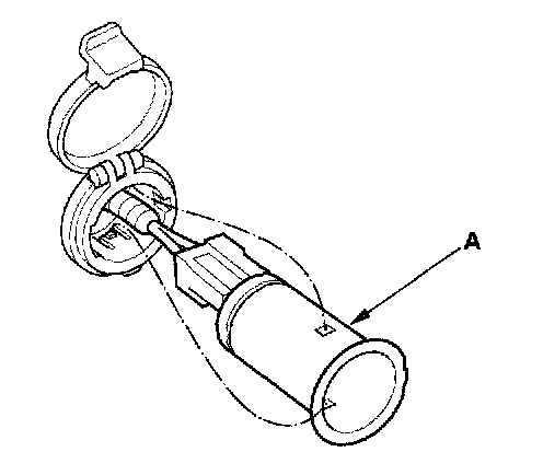 1. Carefully pry the accessory power socket (A) out from the left rear side trim panel.