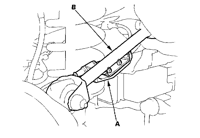 4. Remove the flange bolts (A), and remove the upper arm (B).