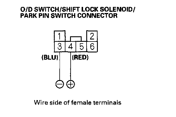 NOTE: Do not connect the battery positive terminal to the No. 3 terminal or you will damage the diode inside the shift lock solenoid.
